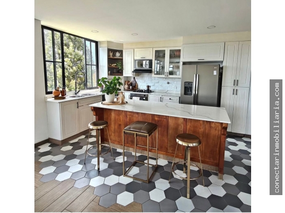 Su área privada de 240 M2 está distribuida en 4 acogedoras alcobas, 3 baños completamente equipados y un garaje con capacidad para 6 vehículos.